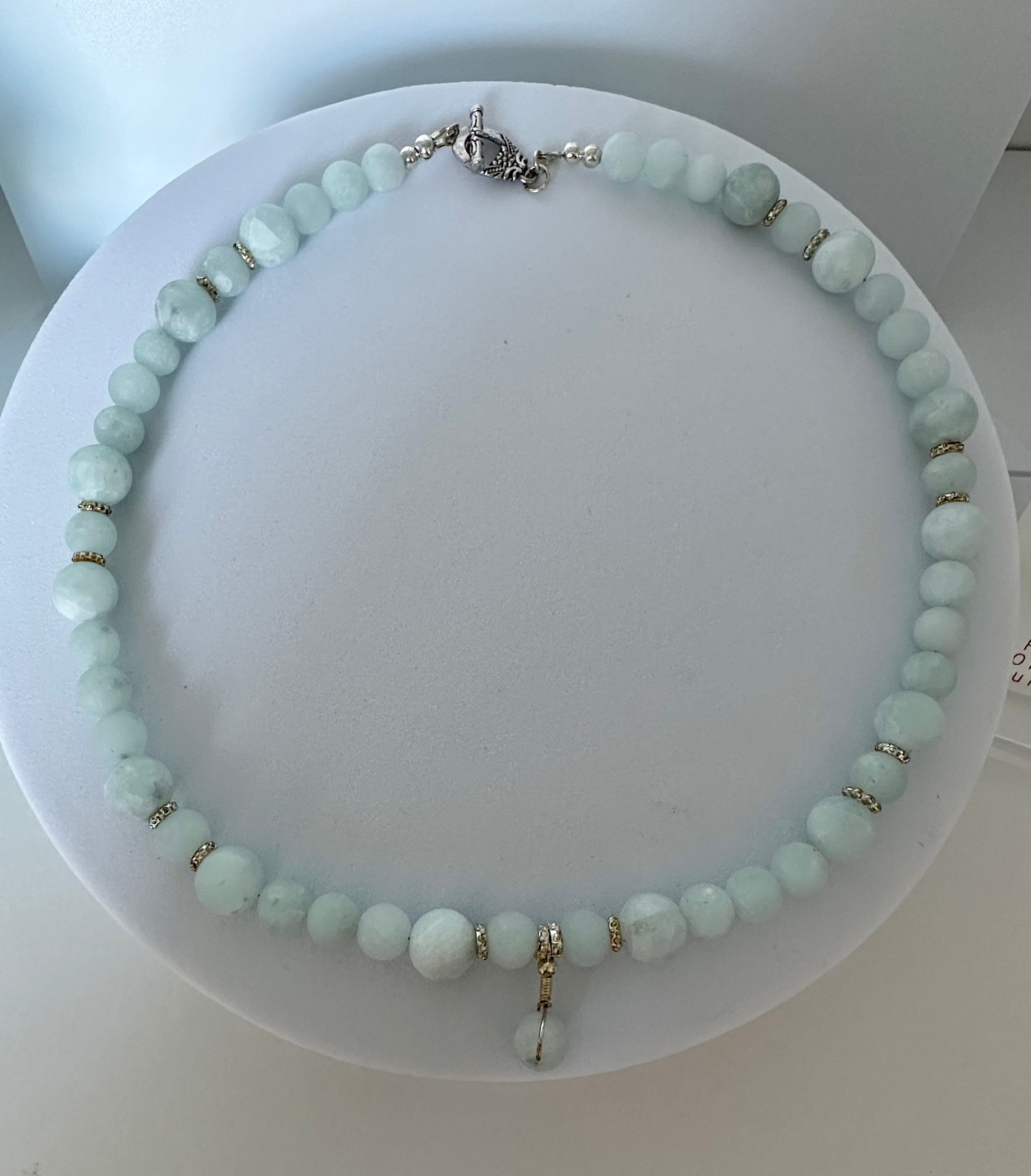 Morganite, a gemstone of exquisite beauty that carries with it the essence of love, compassion, and inner strength. With its delicate blue hues reminiscent of the softest, clearest sea view, morganite captures the purity of emotions and the tenderness of the heart. A lovely expression of the June birth month. Length: 18 ¼ ”/46.355cm;  Ears 1”/2.54cm. SKU 2309